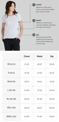 This shirt uses the size guide below. It is meant for women.