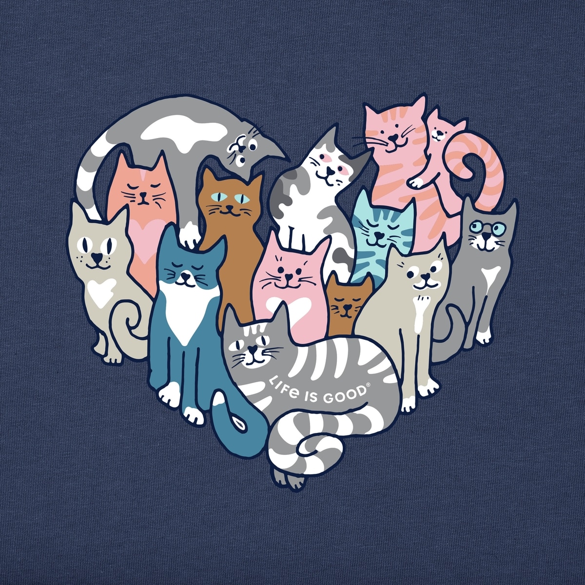 LIFE IS GOOD Valentine's Day Women's Heart of Cats Short Sleeve Tee, Darkest Blue, XX-Large