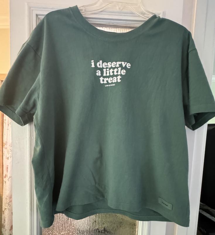 LIFE IS GOOD Women's I Deserve A Little Treat Crusher Boxy Tee, Small