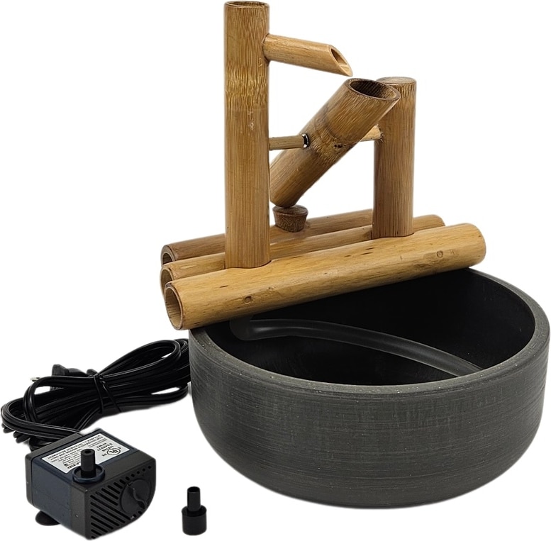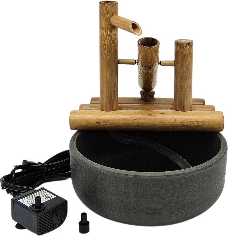 Lifegard Quiet One 100 Pump Bamboo Rocking Fountain, Charcoal Grey Pot, 8-in base
