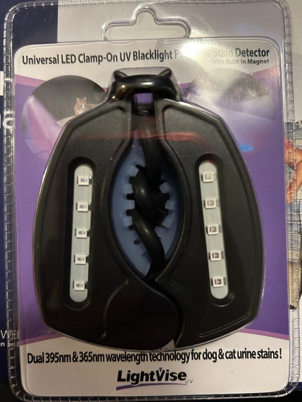 Lightvise Universal LED Clamp-On Dual UV Dog & Cat Pet Urine Stain Detector Magnetic Flashlight, Black