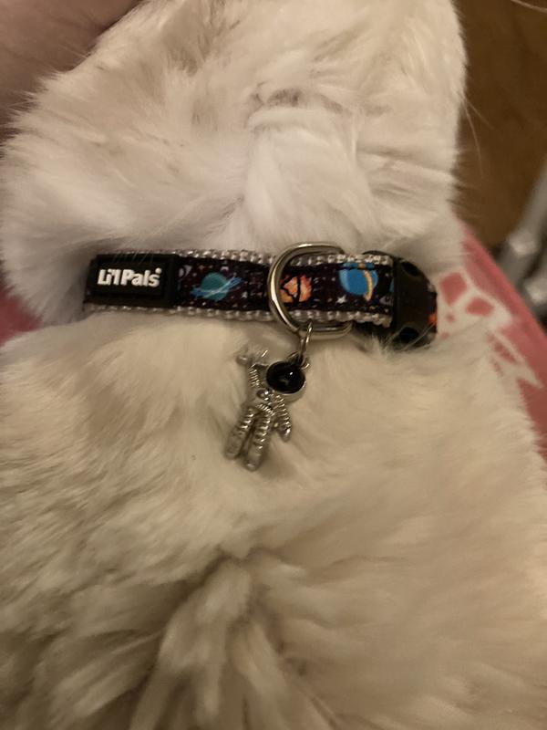 Li'l Pals Charming Ribbon Overlay Nylon Standard Dog Collar, Li'l Space Explorers, Petite X-Small: 6 to 8-in neck, 3/8-in wide