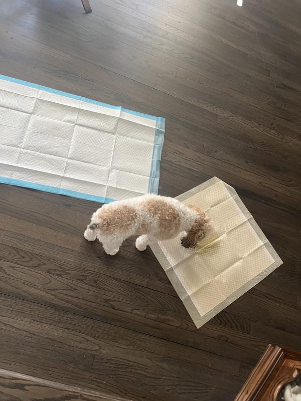 This is the first training pad that has worked with my two-year-old cava poo. Regular size worked well. The liquid went through to the floor. I love that. It's Eco friendly. I think the difference is the bamboo fiber. I did a comparison as you can see in the picture