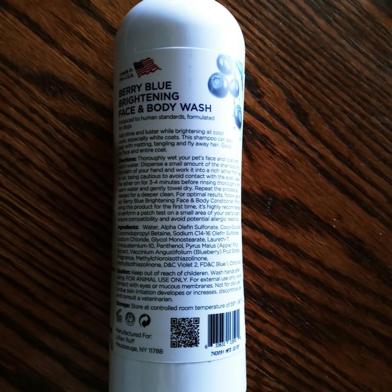 - DealLillian Ruff Berry Blue Brightening Pet Face & Body Conditioner, 128-fl oz bottle$52.95 Chewy Price$50.30 Autoship PricePromo, Spend $100, Get $30 eGift Card with code NEWYEAR +1 deal