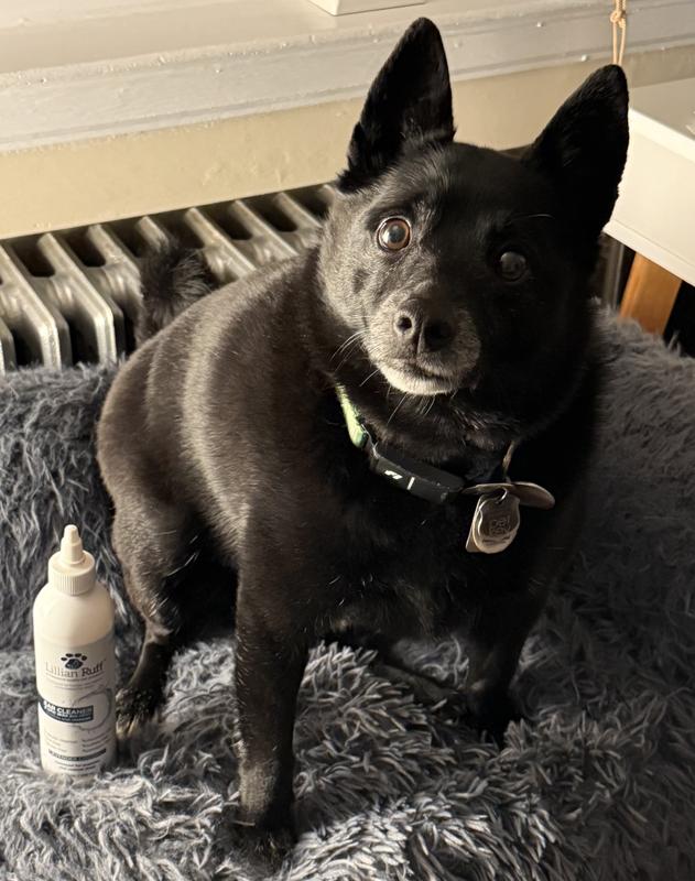 I’ve been using Lillian Ruff Dog Ear Cleaner on my 60lb adult white bull terrier, and it’s made a huge difference! The gentle, non-stinging formula keeps his ears