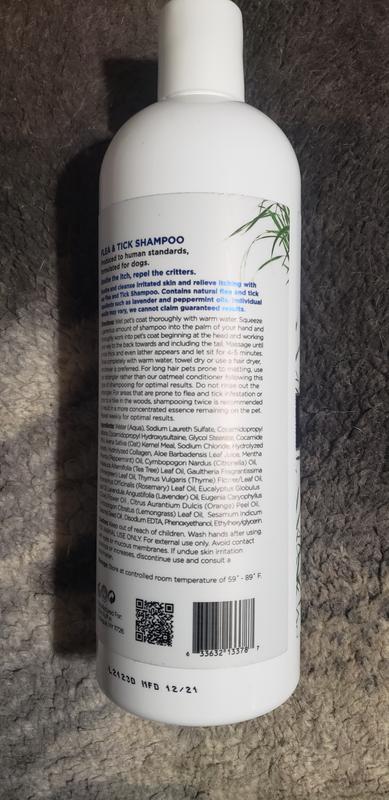 The first thing noticed right away was the nice eucalyptus scent. The shampoo lather was just right and rinsed out easily. I can't honestly say how well it works on fleas or ticks as a repellent, my dog gets a monthly flea preventive medication. Hopefully it'll work in conjunction with the flea medication.