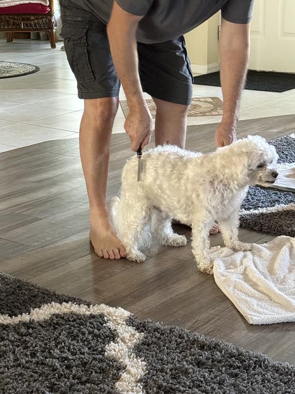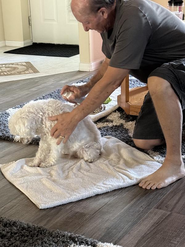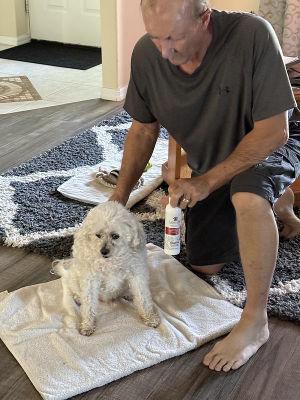 - Spray generously on your pet's coat, and then use a comb to gently brush and undo tangles.