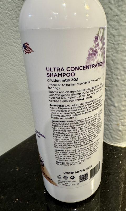 The shampoo arrived well packaged with the bottle placed inside a plastic baggie to prevent mess from leaks, which I appreciated since the bottle did leak. The formula is very concentrated and has a very strong lavender scent, which makes me a bit concerned. It might be too much for my dog sensitive skin. I haven’t used it yet, but I plan to try it out at our next bathtime. Overall, the packaging was thoughtful, but I’ll need to see how my dog reacts to the fragrance before deciding if it’s a good fit for us.