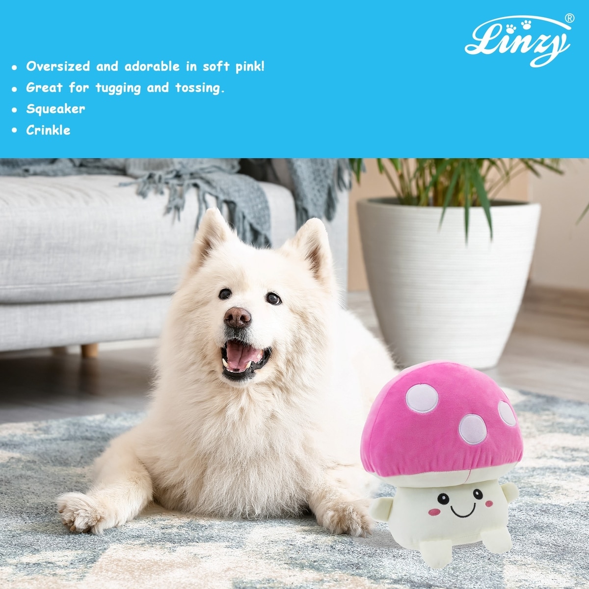 Linzy Toys Mushroom Squeaky Plush Dog Toy, 10.5-in, Pink