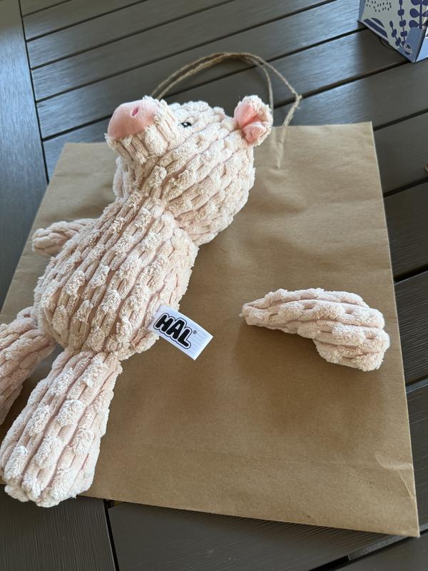 Our pups had this for about 2 seconds and they were playing with a separate arm from the pig body. Looking at it, the arm wasn’t even attached at the seam, leaving