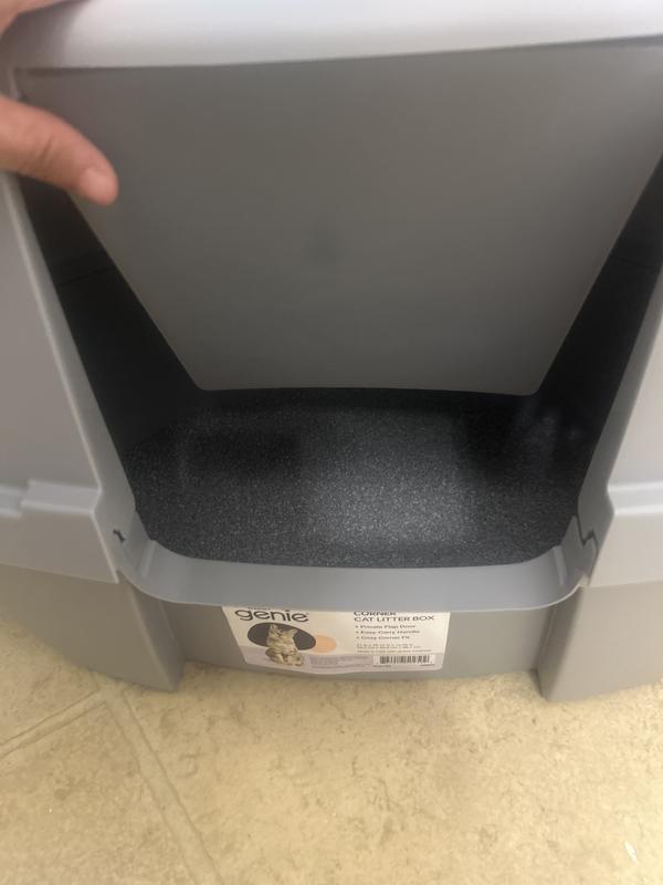 Litter Genie Products Corner Enclosed Cat Litter Box, Gray/Black, 21-in