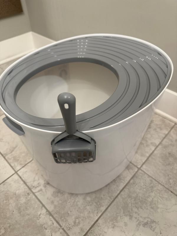 Litter Genie Products Round Top Entry Cat Litter Box, White/Gray, 20.75-in