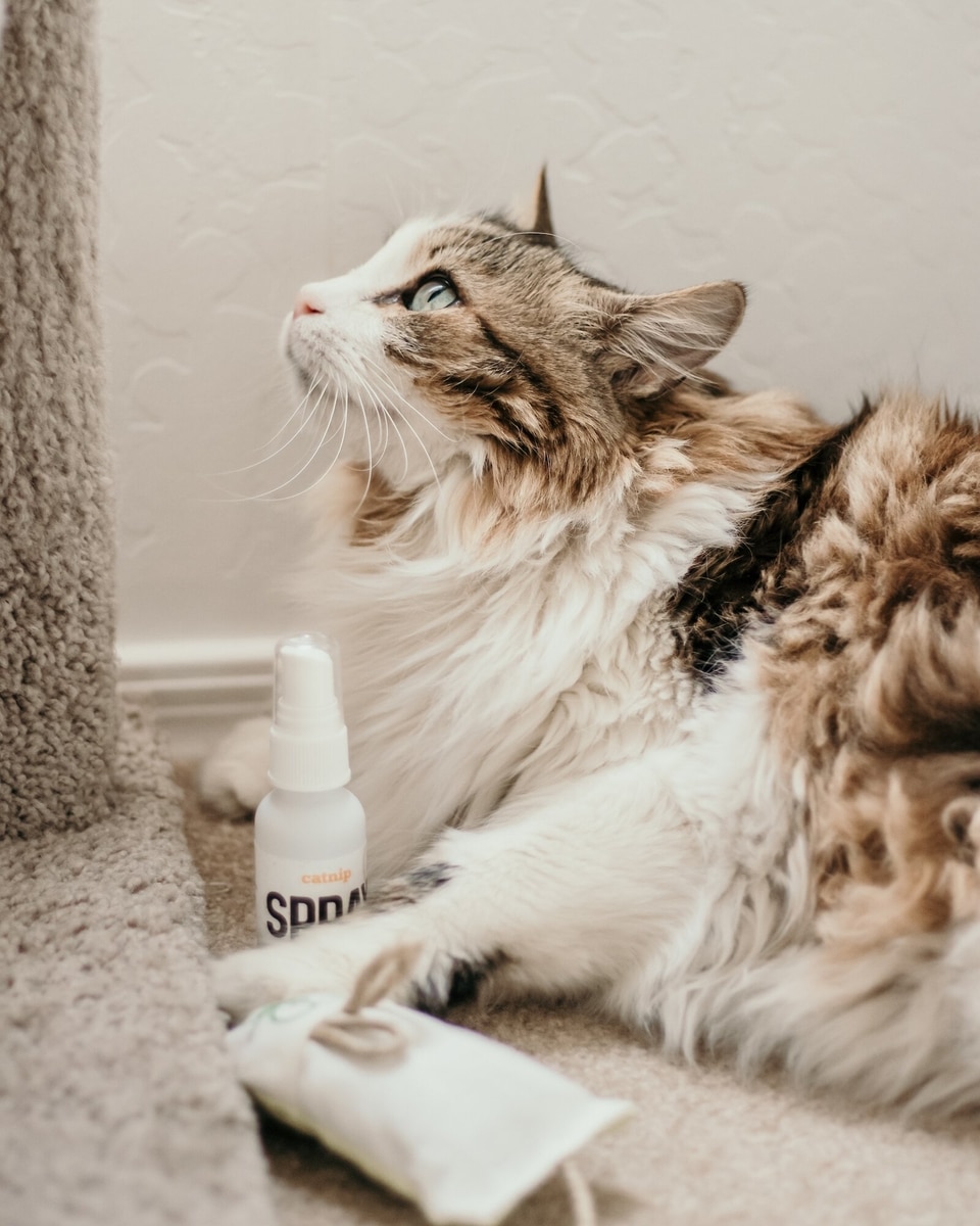 I've been trying to get my younger cat to avoid scratching door trim that doesn't involve an eyesore like taping aluminum foil over it. After going through two expensive "anti-scratching" sprays that did little more than spraying water on the trim would have done, I remembered I had a bottle of this sitting around and sprayed it on one of their scratchers. As you can see, a few sprays and she starts rubbing and scratching it. I've noticed her using the posts more frequently (even if it hasn't been sprayed recently) though she hasn't broken her old habit completely. Seems expensive for what it is, but I've used my current bottle a few months and it still feels full. It's also a lot cleaner to use than regular catnip. I tried that on the post before and it obviously falls to the bottom, making a mess I have to sweep. I've started to use the sprays on their toys too for that reason.