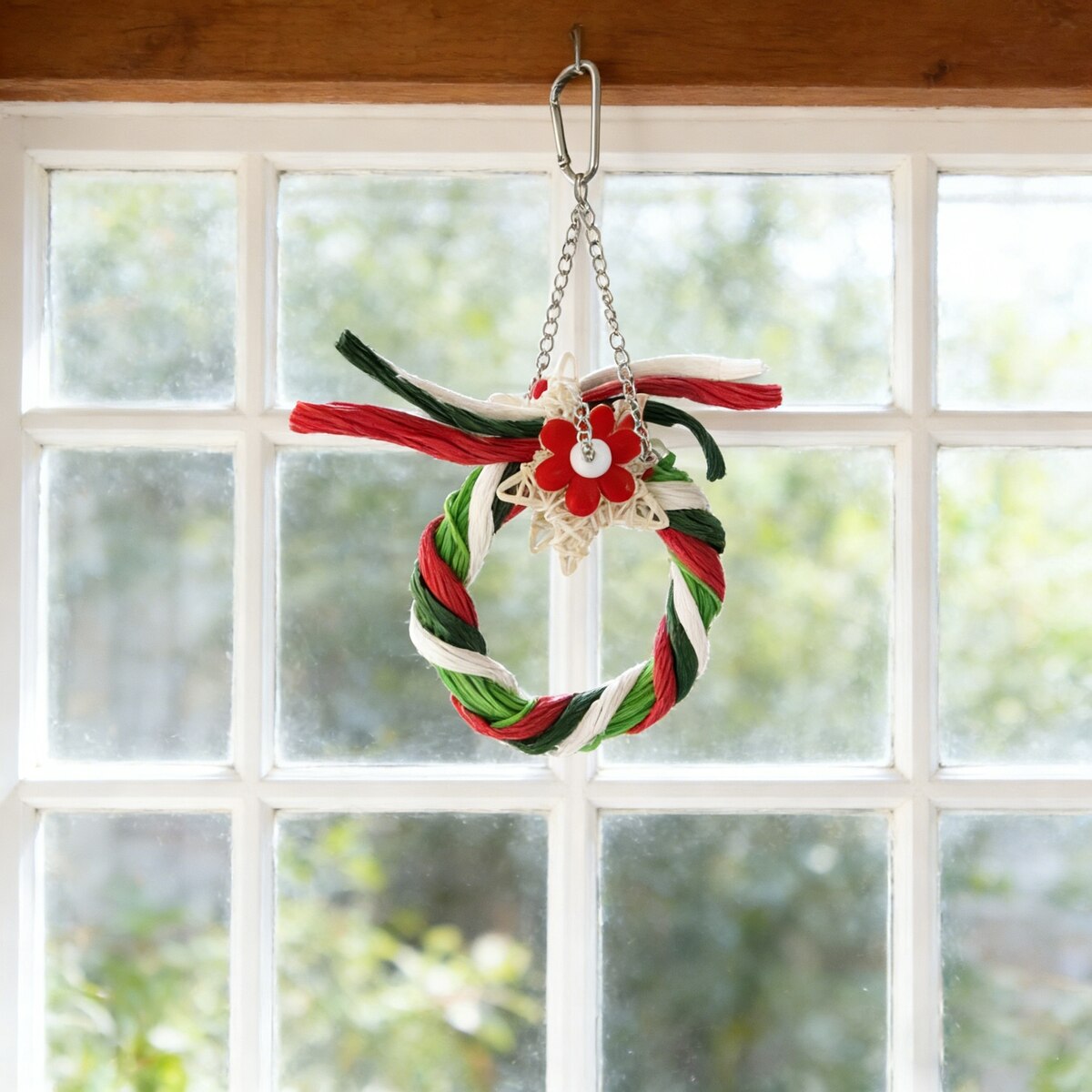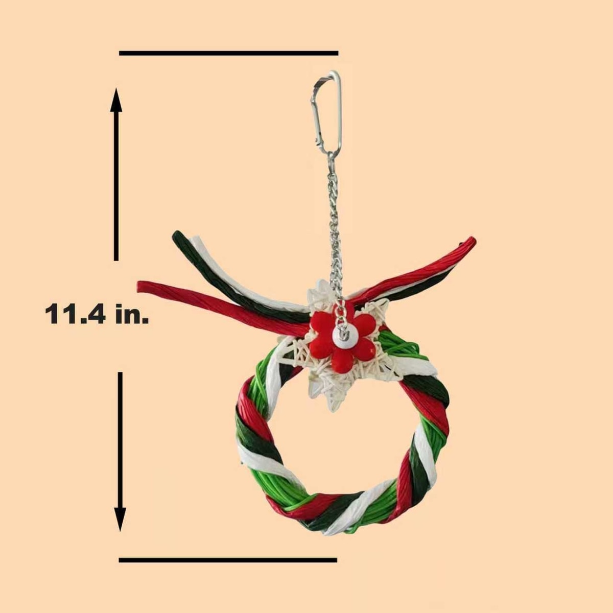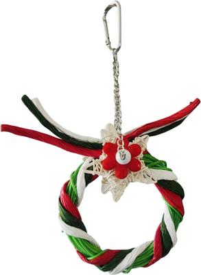 Little Pals Christmas Series Reindeer Ring Chewing & Climbing Bird Toy with Bird-Safe Paper, Red/Green/White, 0.1-lb