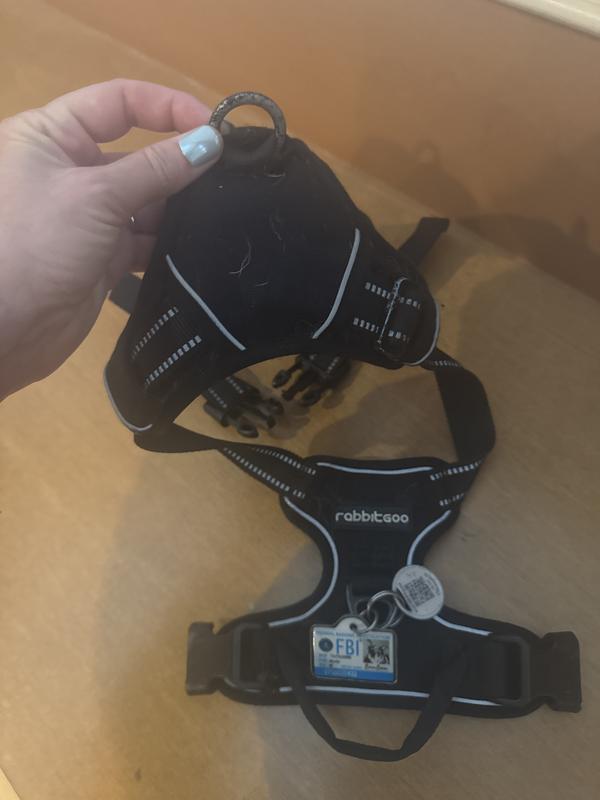 - This harness features nickel-plated hardware, including a D-ring for easy leash attachment.