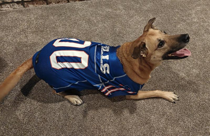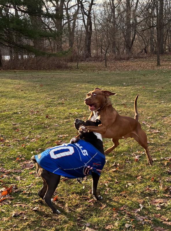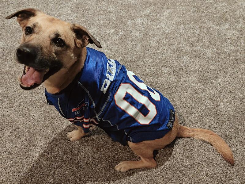 Buffalo Bills Game Day Dog Jersey Was the Ultimate Game Day Attire. My Dog was Styling and fit right in Perfectly with All the Buffalo Bills Fans! This was a quality made outfit and fit so good and My Dog was Proud to wear it!! Everyone was asking where we got it. And was Proud to say, "Where else but Chewy!!!".