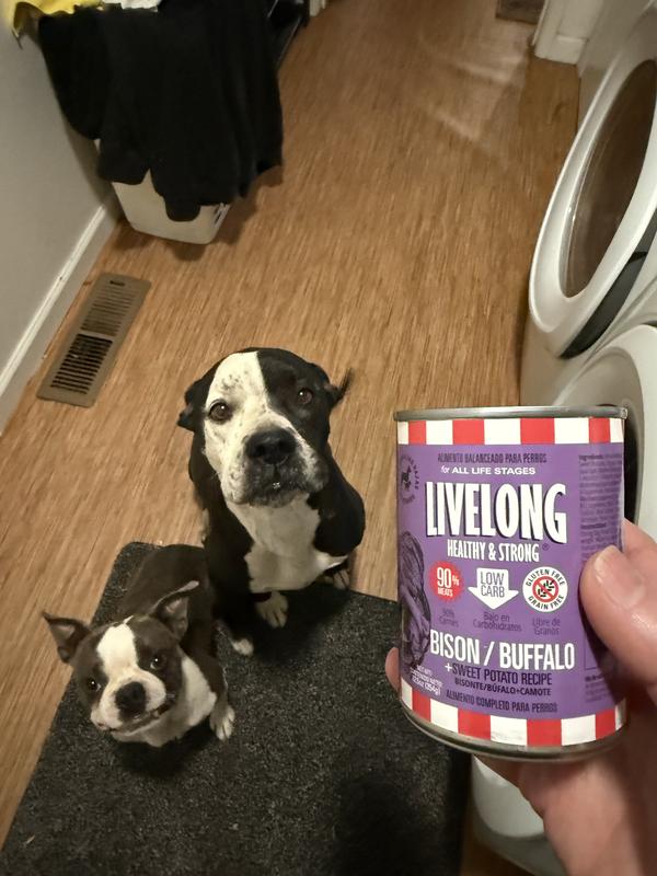 Livelong Healthy & Strong Bison/Buffalo & Sweet Potato Recipe Wet Dog Food, 12.5-oz can, case of 12