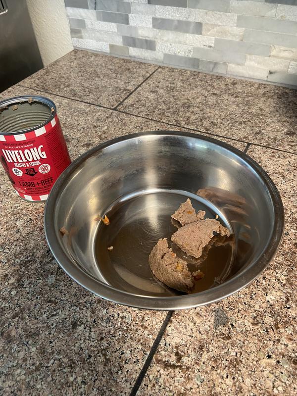 The can food product was fresh and our young corgi found the food delicious. Our pup is currently on a soft food diet due to gastric issues. The veterinarian is comfortable with us using this feed during this time. He also stated that we could continue to use the wet food in addition to his regular dry food. We were very satisfied with the texture and quality of the Livelong Healthy & Strong Lamb, Beef & Sweet Potato can food product. We will continue to feed our pup this product as he had no issues during recovery and enjoyed it very much.