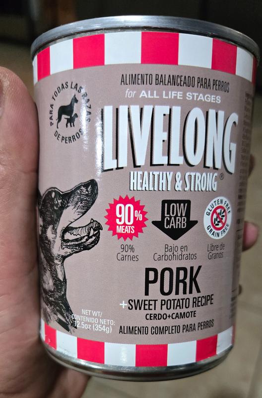Livelong Healthy & Strong Pork & Sweet Potato Recipe Wet Dog Food, 12.5-oz can, case of 12