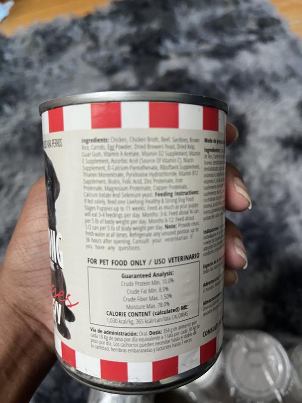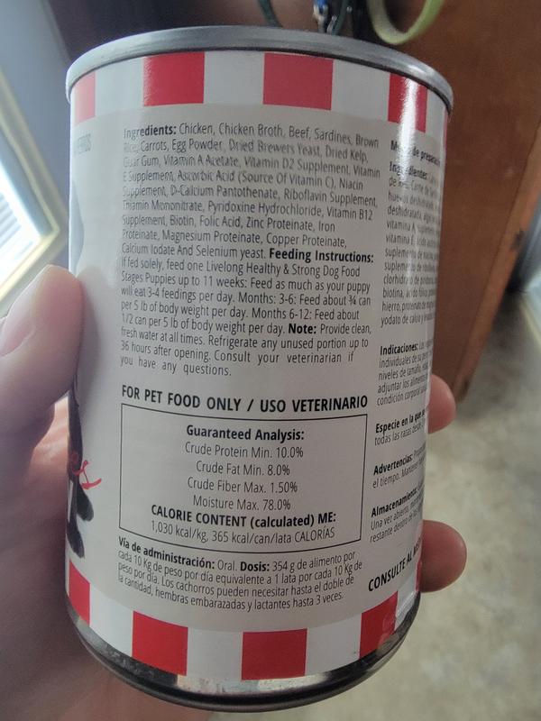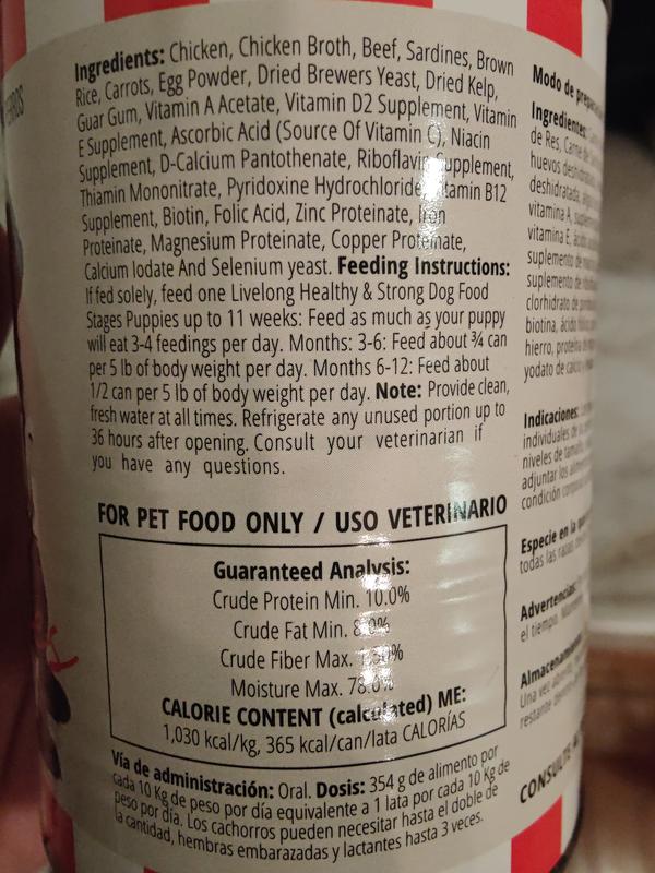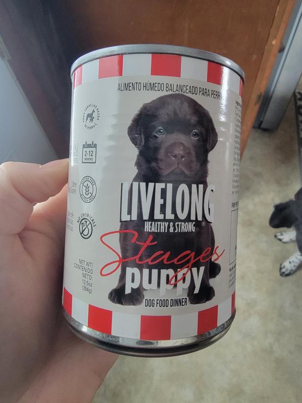 Livelong Healthy & Strong Stages Puppy Wet Dog Food, is a healthy choice for puppies. Donated to the Stafford Dog Pound here in Manahawkin. NJ with no complaints from the puppies. LOL . Eaten and loved by the puppies. Very pleased with their eating it all up and enjoying this wet dog food. TY