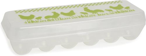 These cartons are sold individually. The reusable plastic egg carton is designed to hold 12 large to extra-large eggs.