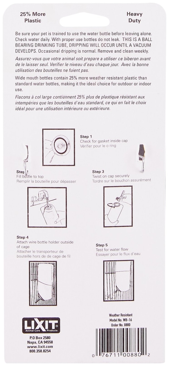 Lixit Wide Mouth Small Animal Water Bottle, 16-oz