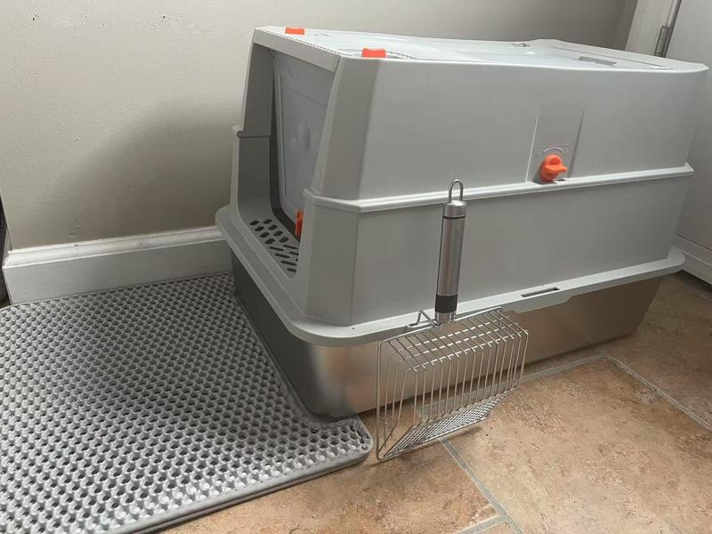 I love that it has both front and top entry options, and the stainless steel makes it super easy to clean with no smells or sticking. The scoop and mat are great extras, and my cat had no trouble switching to it right away.