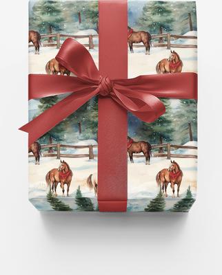 London Penny Evergreen Equestrian Wrapping Paper, Glossy, 15-ft roll
