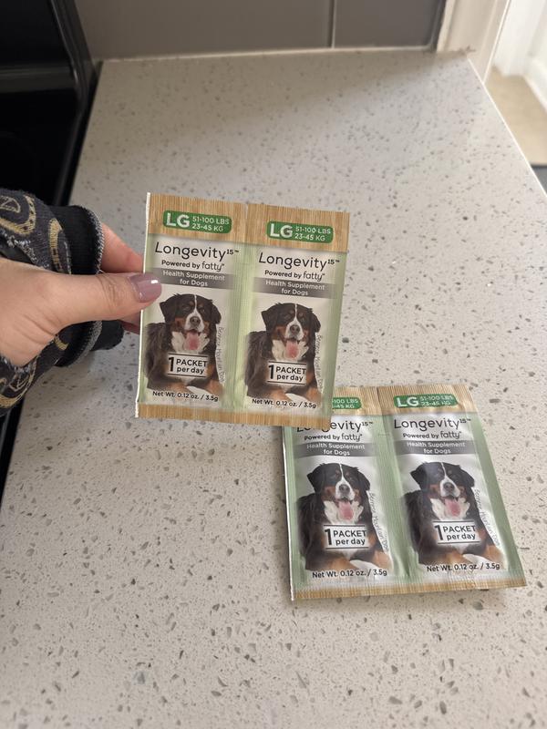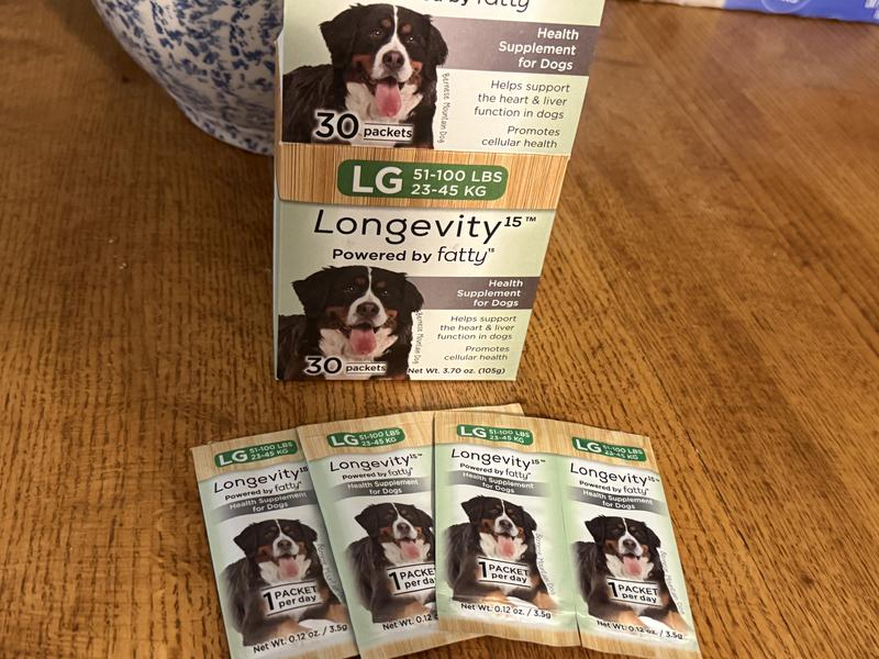 13 year old Sophie is a picky eater and giving her supplements' is difficult to say the least. But Longevity 15 is actually one that she waits to be added to her meal. Not sure if it is helping with her arthritis and stiffness, but she truly seems better in her stamina and attitude. It gives me hope for a longer life.