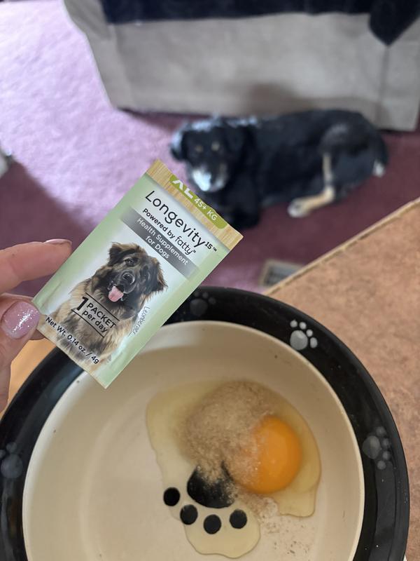 I absolutely LOVE that Fatty 15 has made their product for dogs. I've been taking the human kind for over two years and it's amazing. I was a little worries about the amount of powder, but I just mix it into their food and they don't even notice. Fantastic product!
