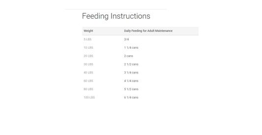 For dog's weighing 40 pounds, feed approximately 3 1/4 cans per day. The feeding guidelines are based on daily recommendations and should be divided up between feeding times. Optimal feeding amounts may vary according to your pet's temperament, activity level and environment. If you have any questions regarding your pet's health, please contact your veterinarian.