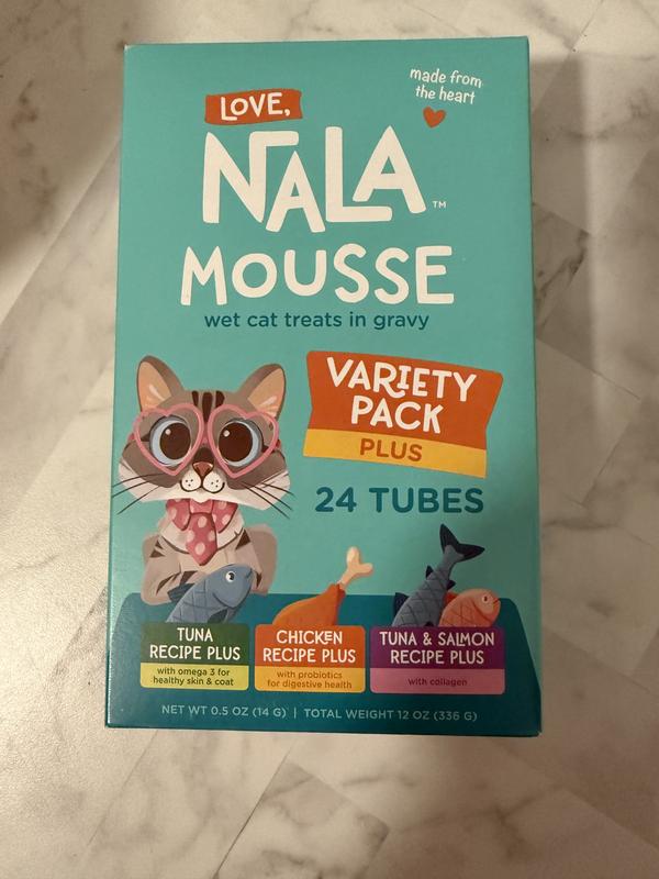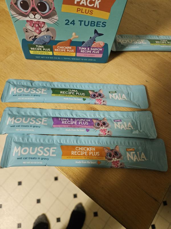- DealLove, Nala Mousse Variety Pack Grain-Free Lickable Cat Treats, 0.5-oz tube, case of 24$18.00 Chewy Price$23.99 List Price$17.10 Autoship PricePromo, Spend $100, Get $30 eGift Card with code NEWYEAR +1 deal