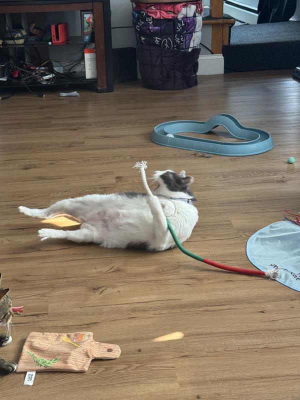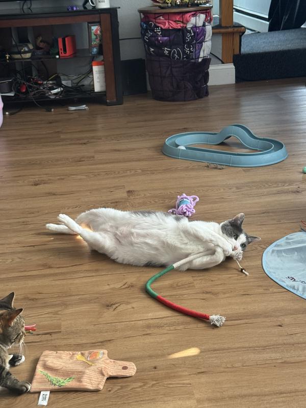 My cat was interested in the entire toy for 2 minutes then he only interested in chewing on the little string with the tiny rock on it which could turn into a disaster if I didn’t watch him play with it closely as he could have swallowed that thing. Not recommend this to other pet oweners, or you should cut the little string at the end. Because mine was only interested in the little string, paying $8 wasn’t worth it. Also, this is my first time ordering with chewy and I didn’t realize if you want to initiate return you need to call or email them and not just request it from the app. Not the biggest fan of this, but good to know.