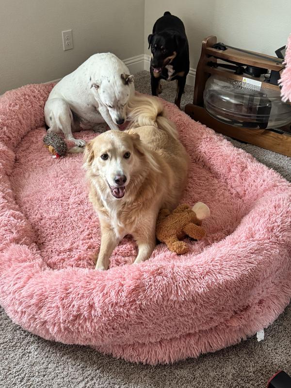 - This bed’s oversized design provides ample space for humans and their furry family members to cuddle and relax together.
