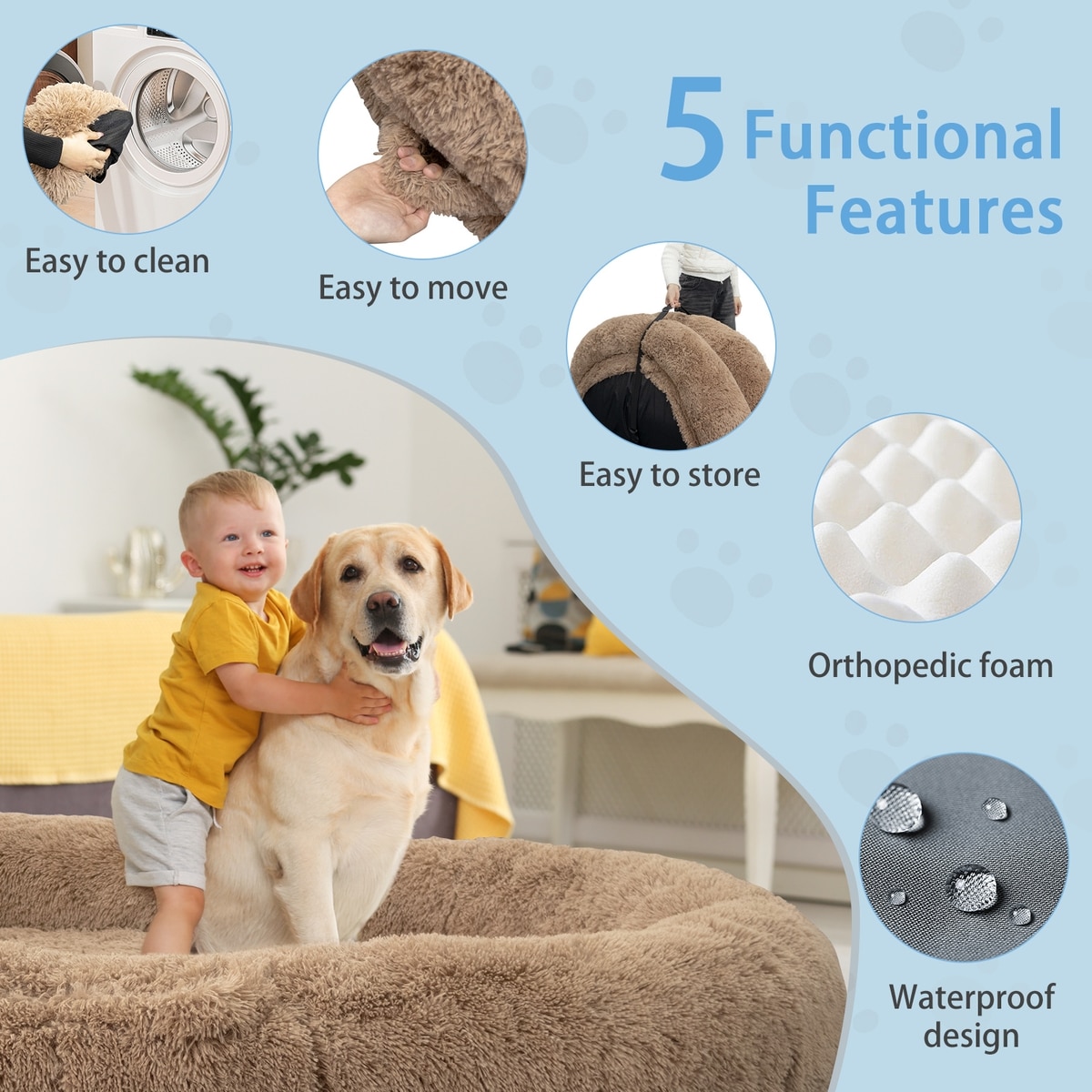 - The oval wrap-around design with raised edges and concave interior provides a sense of security and promotes better sleep for your furbaby.