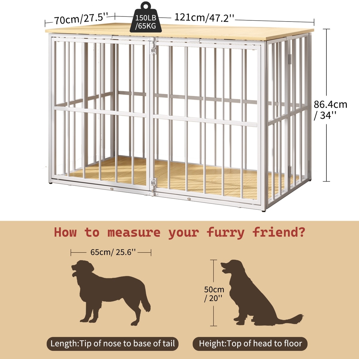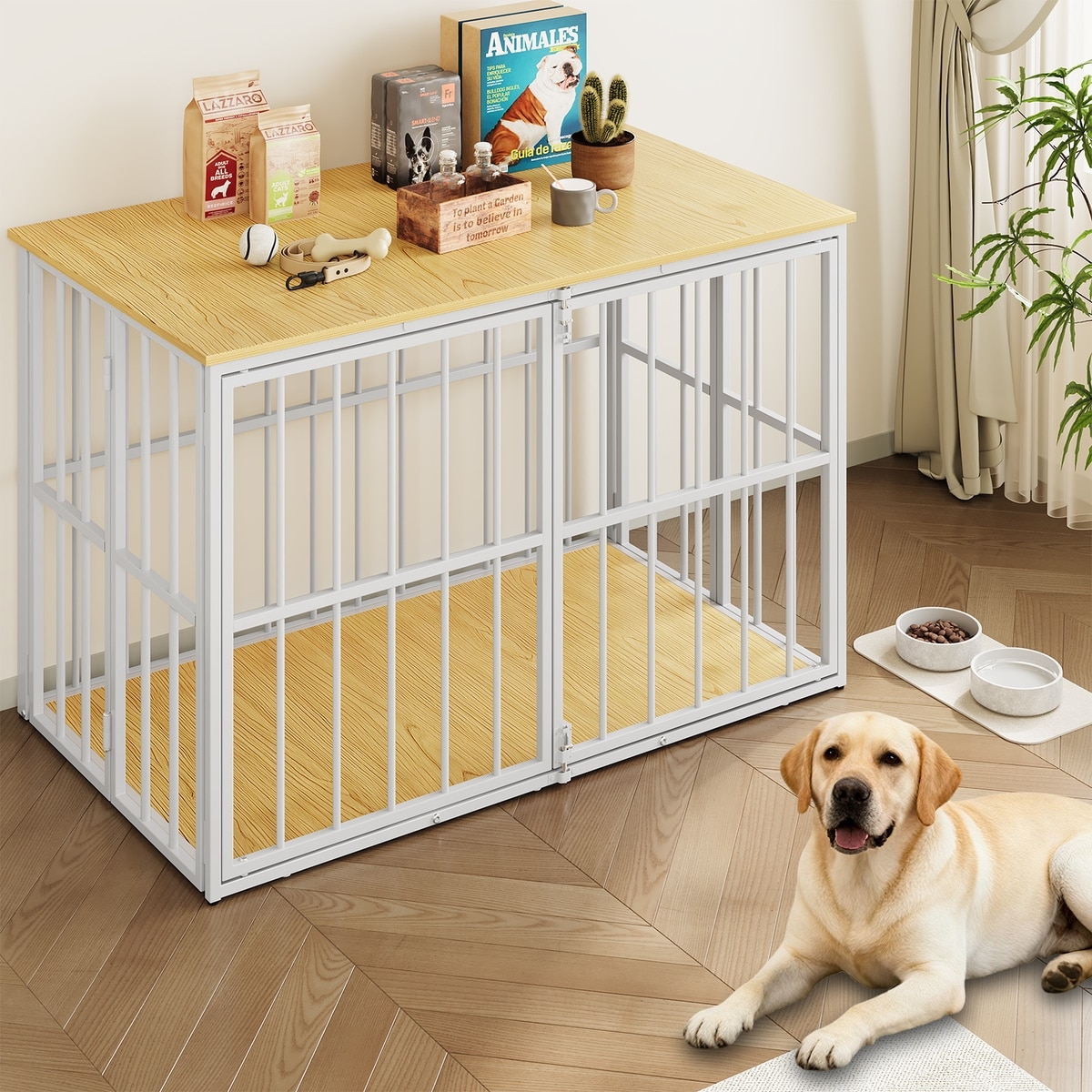 The LovMor Foldable Pre-Assembled Crate Dog Kennel weighs 85 pounds.