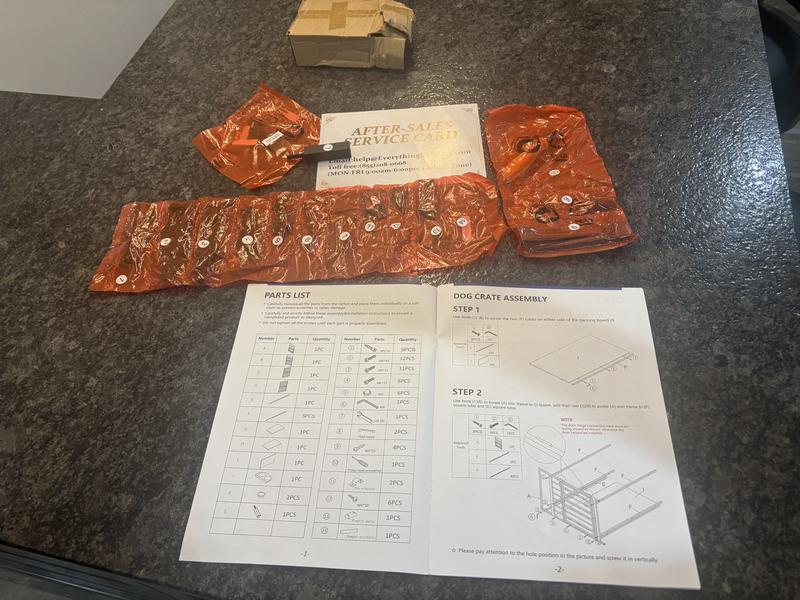 I received my crate within a few days. Its was easy to put together and my 120 pound rottweiler actually loves this crate. He goes in on his own and takes his naps in there. The crate with the wooden top acts as a side table for a clock and lamp. Love the new addition to the living room