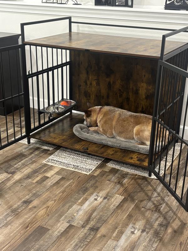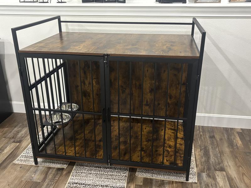 - Multi-functional, retro-style design includes 1 dog crate, 2 stainless steel bowls. Easy to assemble with the included instructions.