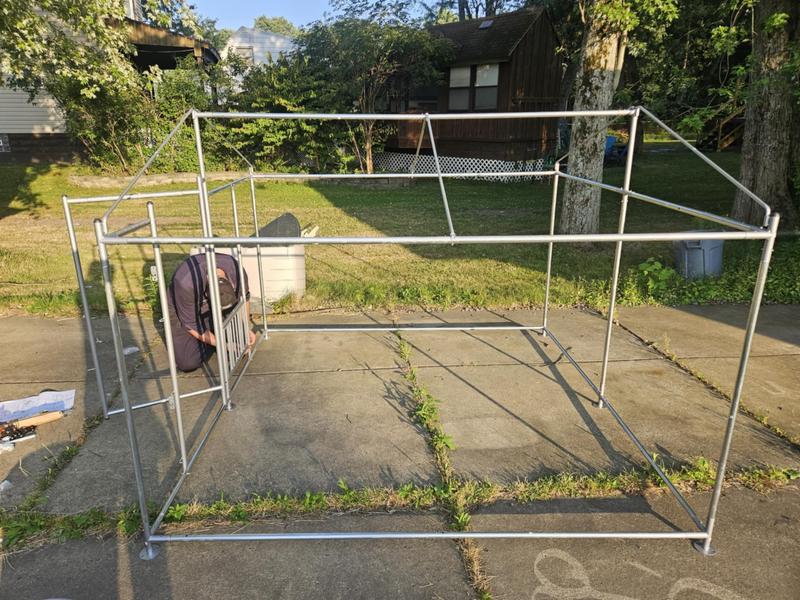 This kennel was hard to assemble, specially because all of the chain link fence was tangled, it was really hard to detangle, by the time we were done detangling