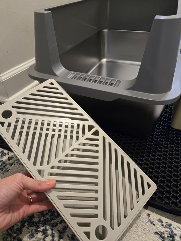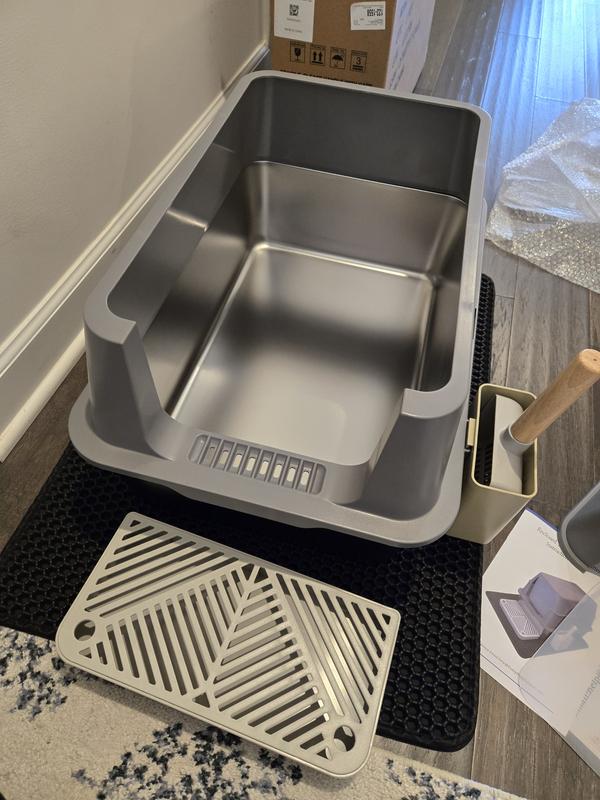 This is a fantastic litter box because it is so high quality! The bottom is made of sturdy stainless steel which doesn’t absorb odor like plastic does. It’s also great to be able to customize the box to your liking - you can choose whether it’s enclosed, high sided, or simply just the bottom. This is a great aspect when you have multiple cats to find the best fit for your furry family! Not only is the box itself fantastic, but the mat is perfect for trapping any runaway litter! I didn’t even realize my old litter mat wasn’t working until I used this one! I definitely recommend this product!