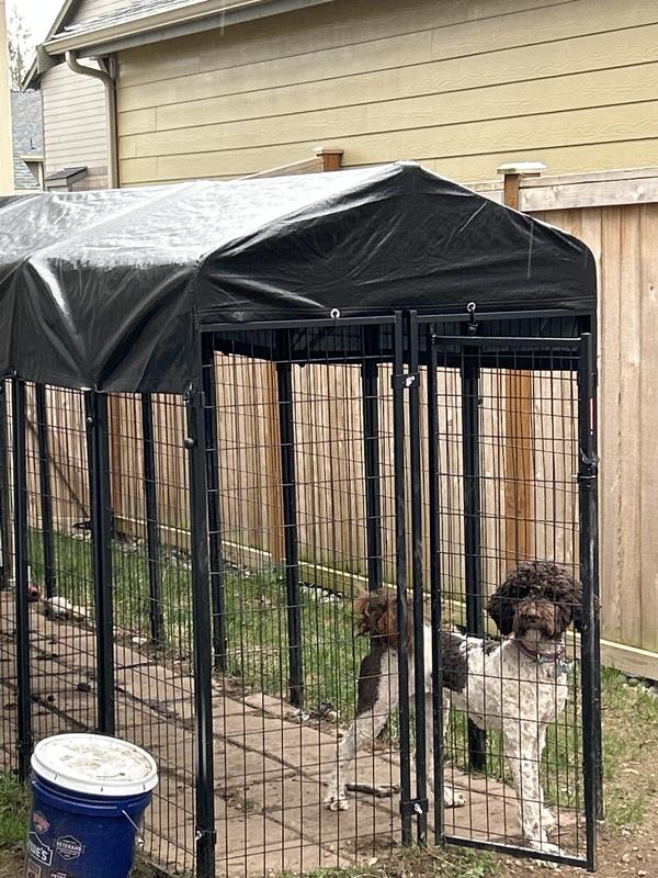 The kennels are modular, panels can be added or subtracted to make different sizes. Depending on how the kennel is expanded, the cover system may not work; the kennel would need to stay 4 feet wide.