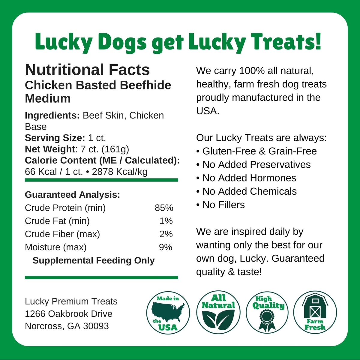 Lucky Premium Treats Chicken Basted Rawhide Medium Dog Chews, 7 count