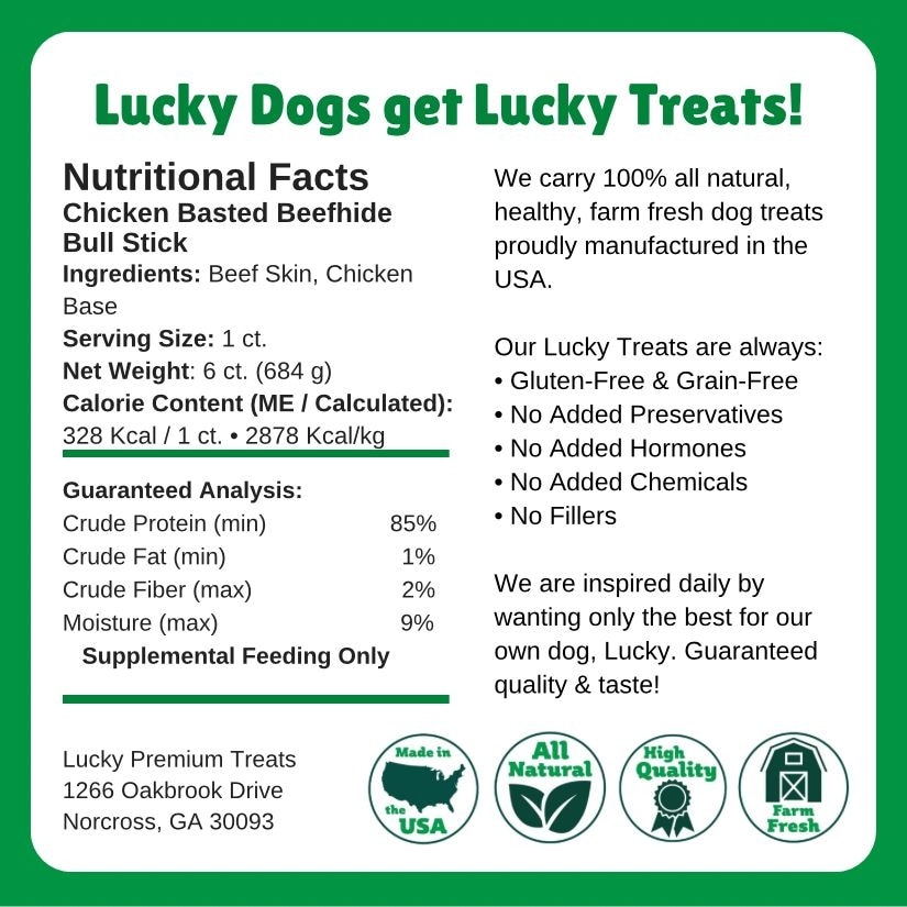 Lucky Premium Treats Chicken Basted Rawhide Bull Sticks X-Large Dog Chews, 6 count