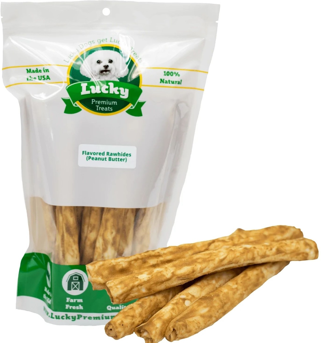 Lucky Premium Treats Peanut Butter Basted Rawhide Large Dog Chews, 10 count