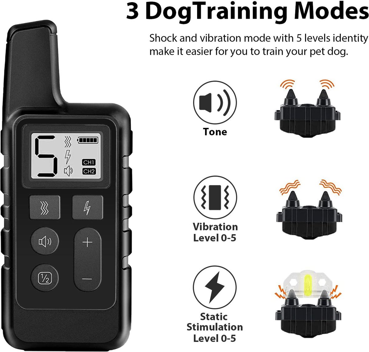 - Features a variety of training modes and adjustable sensitivity levels for static, vibration, and sound options.