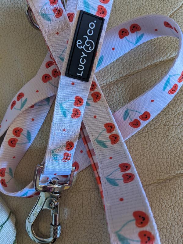 Lucy & Co. The Cheery Cherries Padded Dog Leash, Red, Large: 5-ft long, 1-in wide