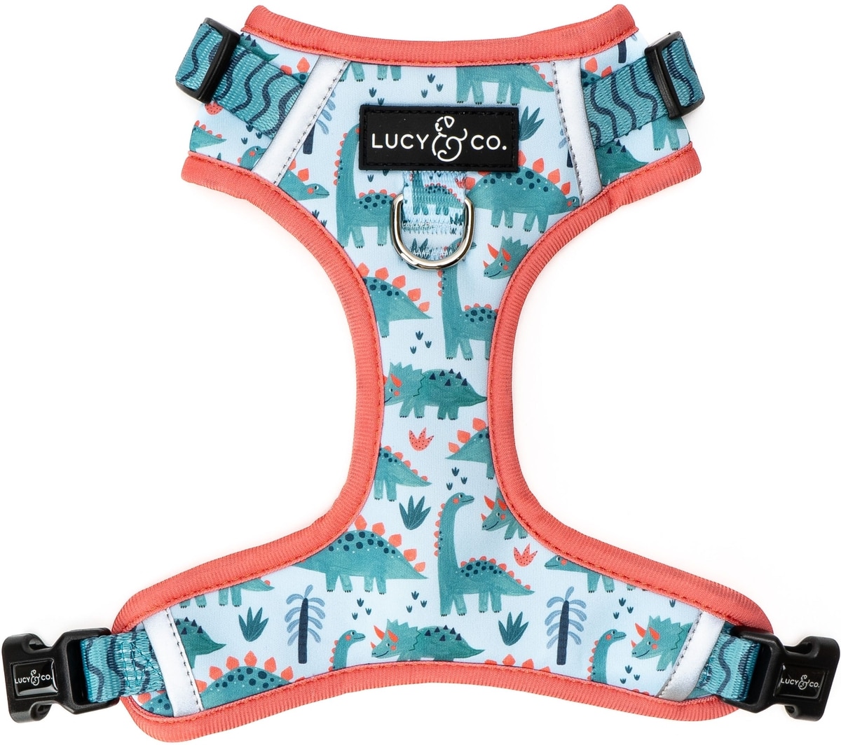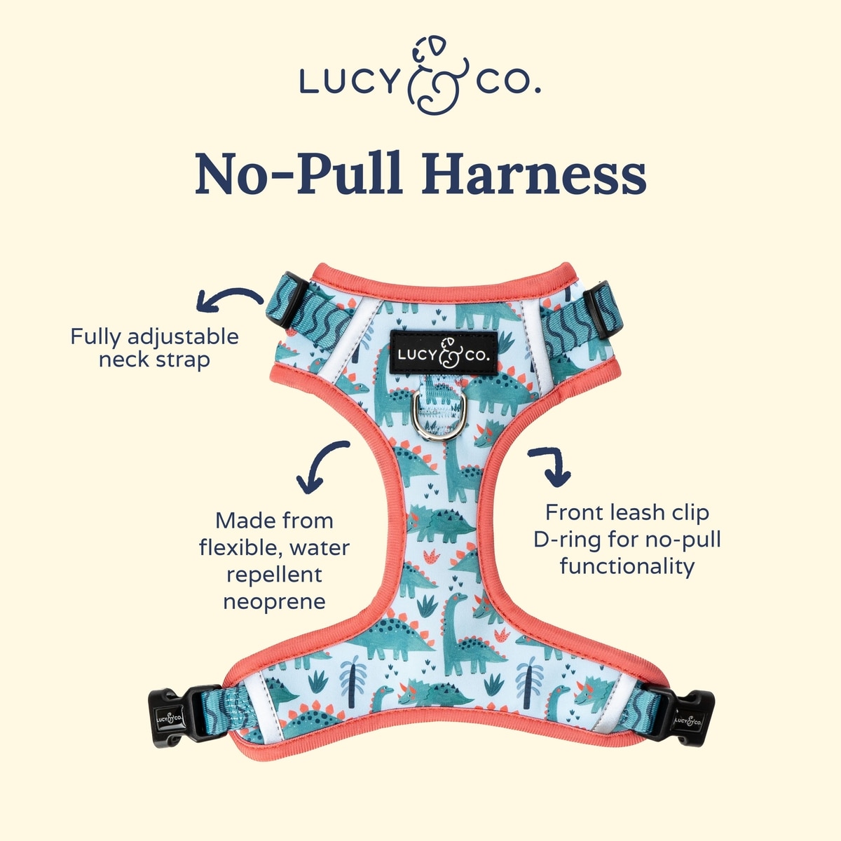 The Lucy & Co. no-pull dog harness is ideal for pups that need extra stability. Featuring front and back leash attachment points and fully adjustable neck and chest straps, these harnesses are perfect for leash training.