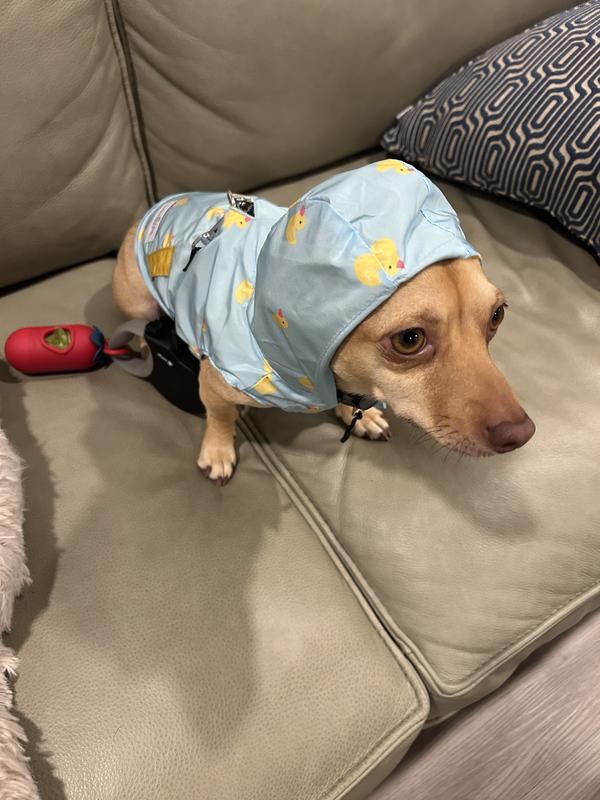 Lucy & Co. The Lucky Ducky Reversible Waterproof Dog Raincoat, Blue/Yellow, Small