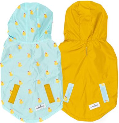 Lucy & Co. The Lucky Ducky Reversible Waterproof Dog Raincoat, Blue/Yellow, Medium