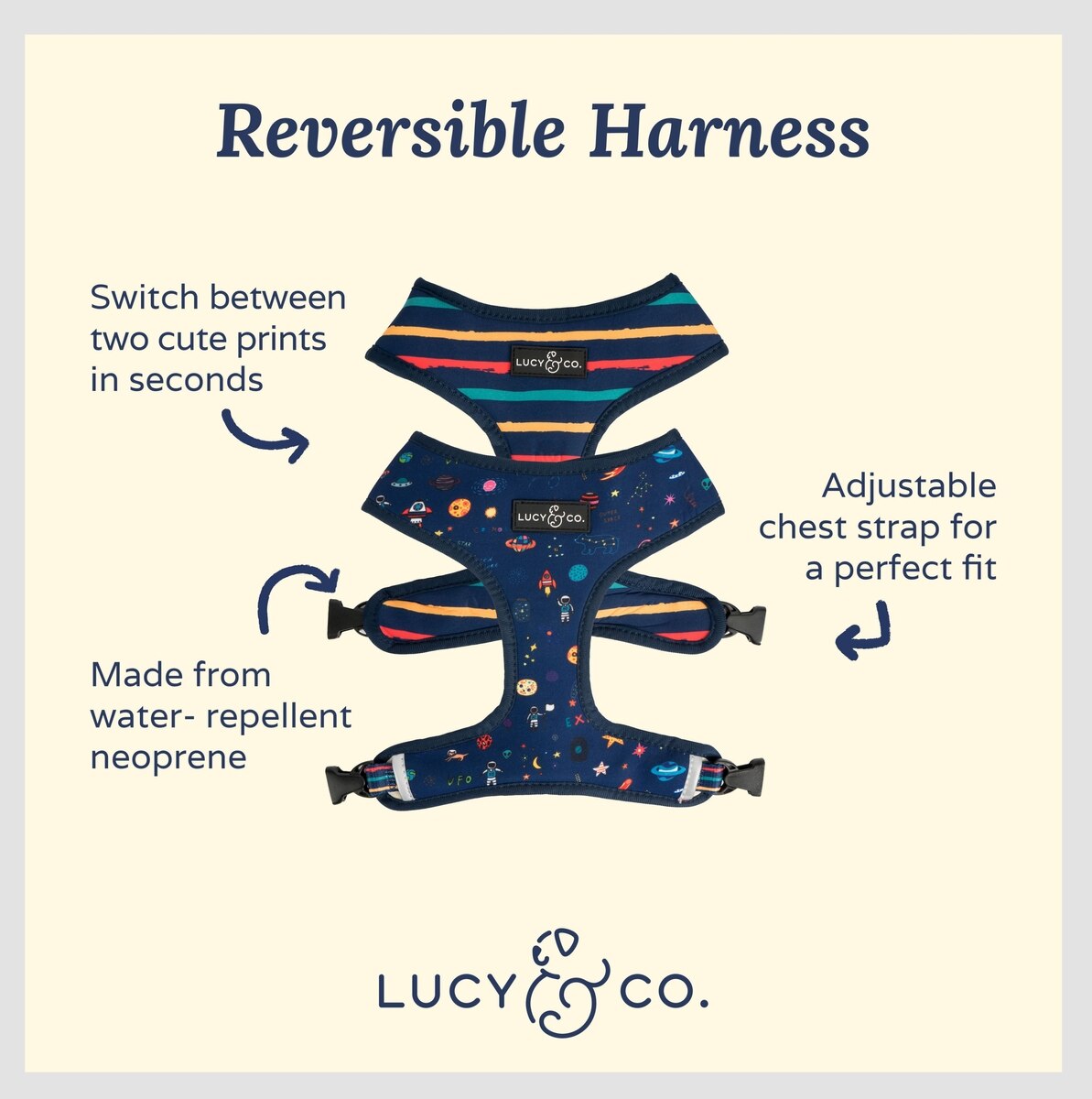 Lucy & Co. The Space Doodle Reversible Dog Harness, Navy, X-Small: 12 to 15-in chest